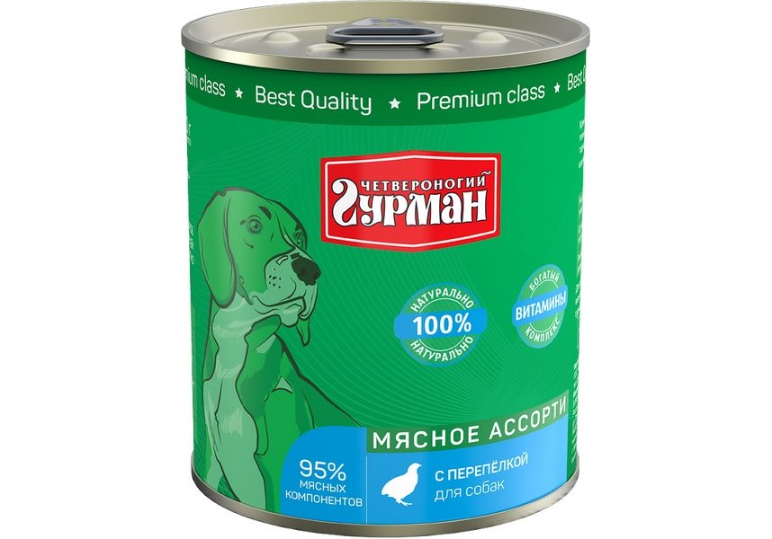 Четвероногий Гурман Мясное ассорти Консервы для собак с Перепелкой (цена за упаковку) 100г х 6шт