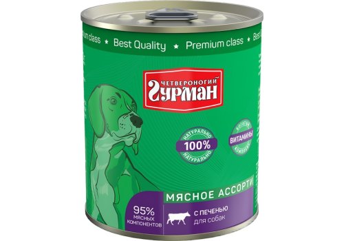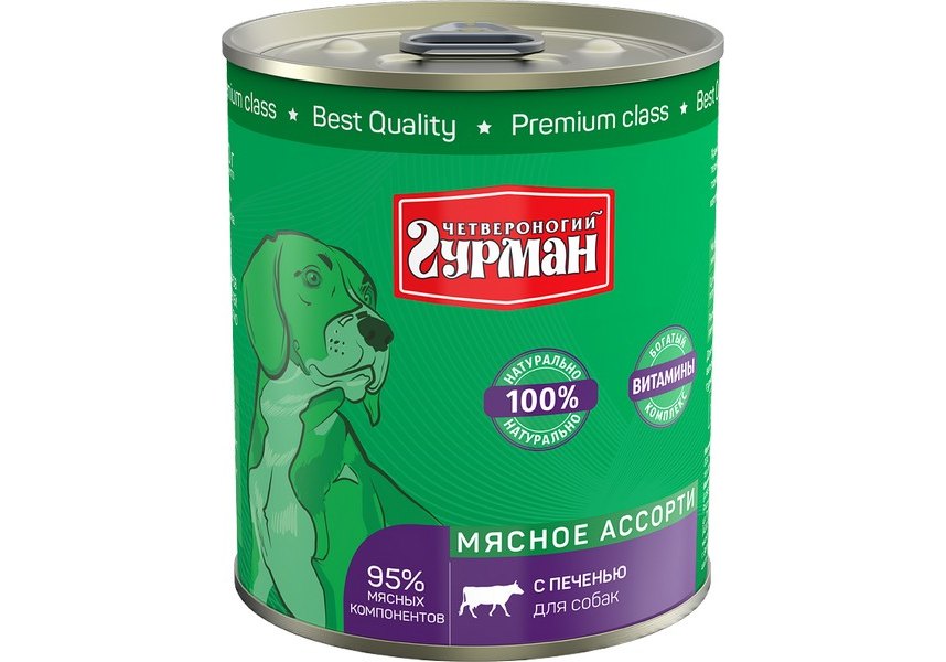 Четвероногий Гурман Мясное ассорти Консервы для собак с Печенью (цена за упаковку) 100г x 6шт