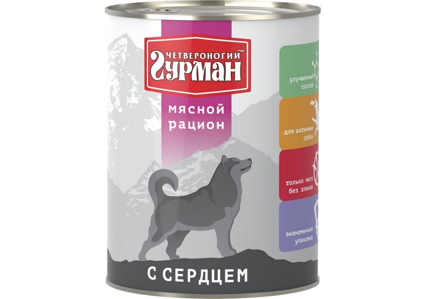 Четвероногий Гурман Мясной рацион Консервы для собак с Сердцем (цена за упаковку) 850г x 6шт