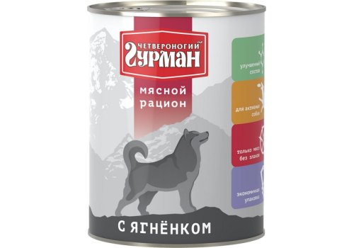Четвероногий Гурман Мясной рацион Консервы для собак с Ягненком (цена за упаковку) 850г x 6шт