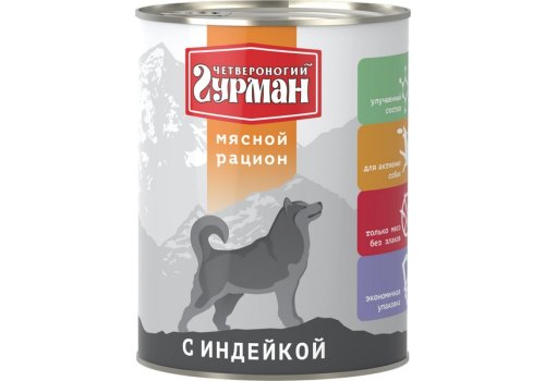 Четвероногий Гурман Мясной рацион Консервы для собак с Индейкой (цена за упаковку) 850г x 6шт