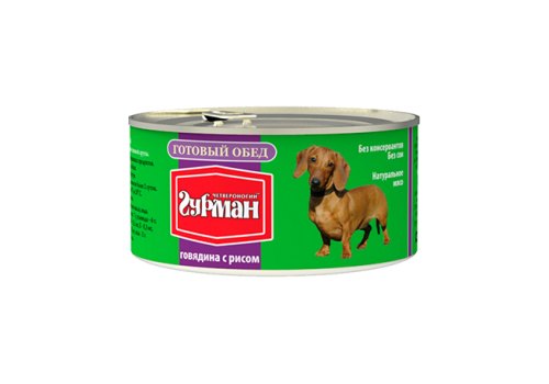 Четвероногий Гурман Готовый обед Консервы для собак Говядина с рисом (цена за упаковку) 325г x 12шт
