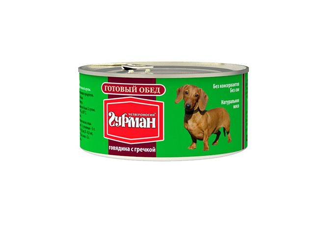 Четвероногий Гурман Готовый обед Консервы для собак Говядина с гречкой (цена за упаковку) 325г x 12шт