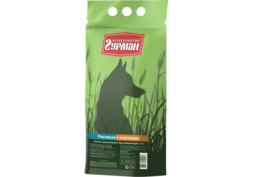 Четвероногий Гурман Каша для собак Рисовая с Морковью (Зеленый пакет) 1 кг