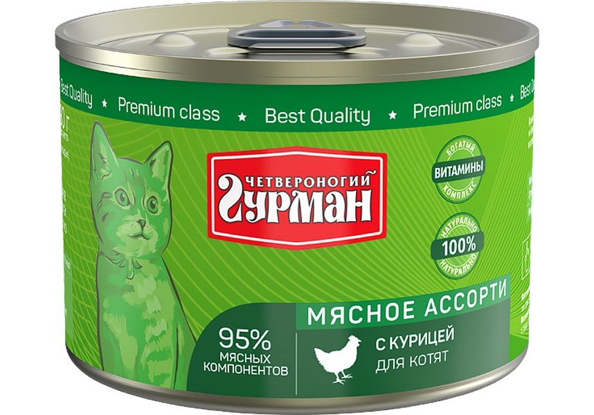 Четвероногий Гурман Мясное ассорти Консервы для Котят с Курицей (цена за упаковку) 100г х 12шт