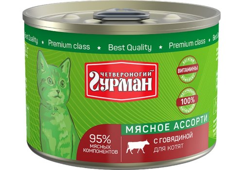 Четвероногий Гурман Мясное ассорти Консервы для Котят с Говядиной (цена за упаковку) 100г x 12шт