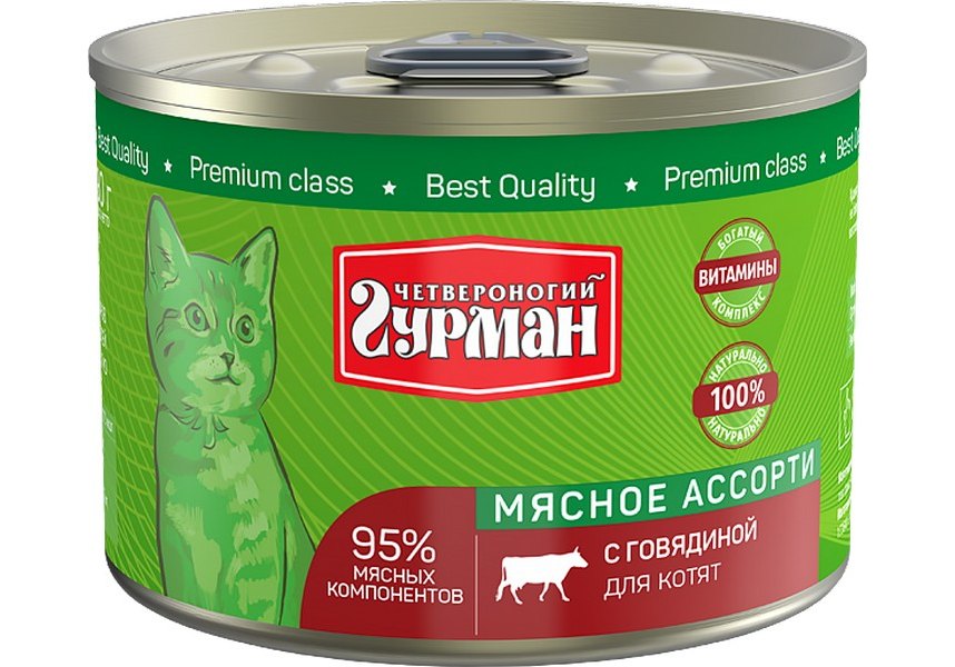 Четвероногий Гурман Мясное ассорти Консервы для Котят с Говядиной (цена за упаковку) 100г x 24шт