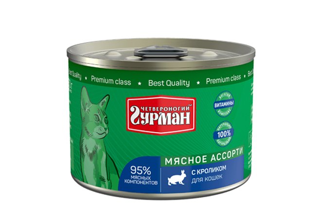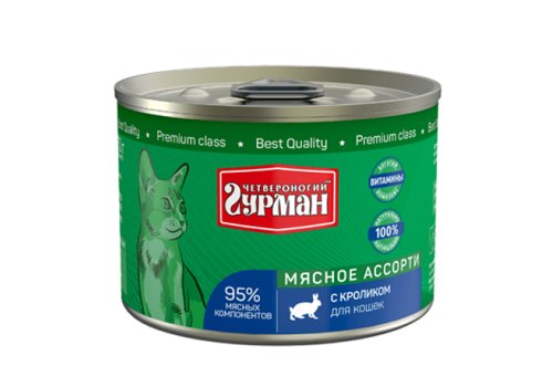 Четвероногий Гурман Мясное ассорти Консервы для кошек с Кроликом (цена за упаковку) 190г х 12шт