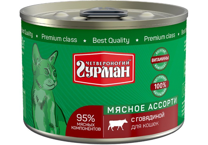 Четвероногий Гурман Мясное ассорти Консервы для кошек с Говядиной (цена за упаковку) 100г х 24шт