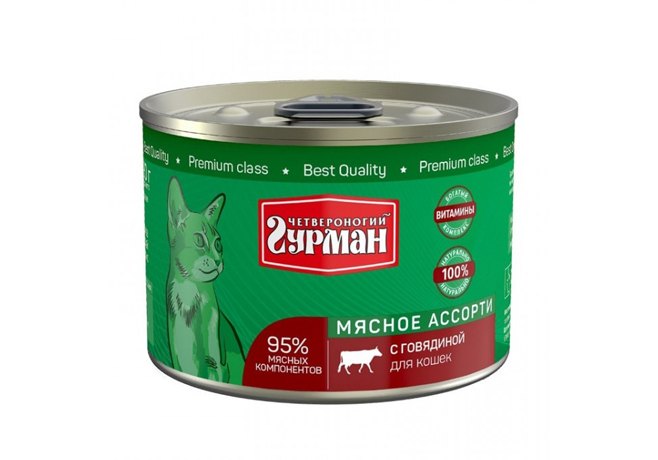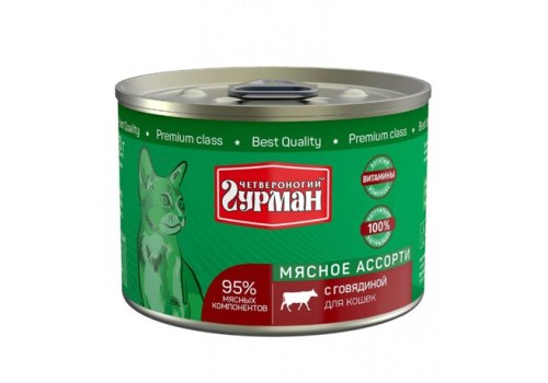 Четвероногий Гурман Мясное ассорти Консервы для кошек с Говядиной (цена за упаковку) 190г х 12шт