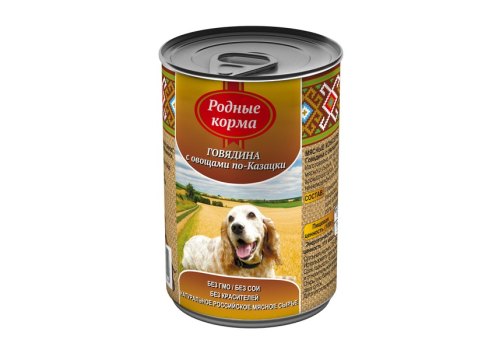 Родные Корма Консервы для собак Говядина с овощами по-Казацки (цена за упаковку) 410г х 9шт