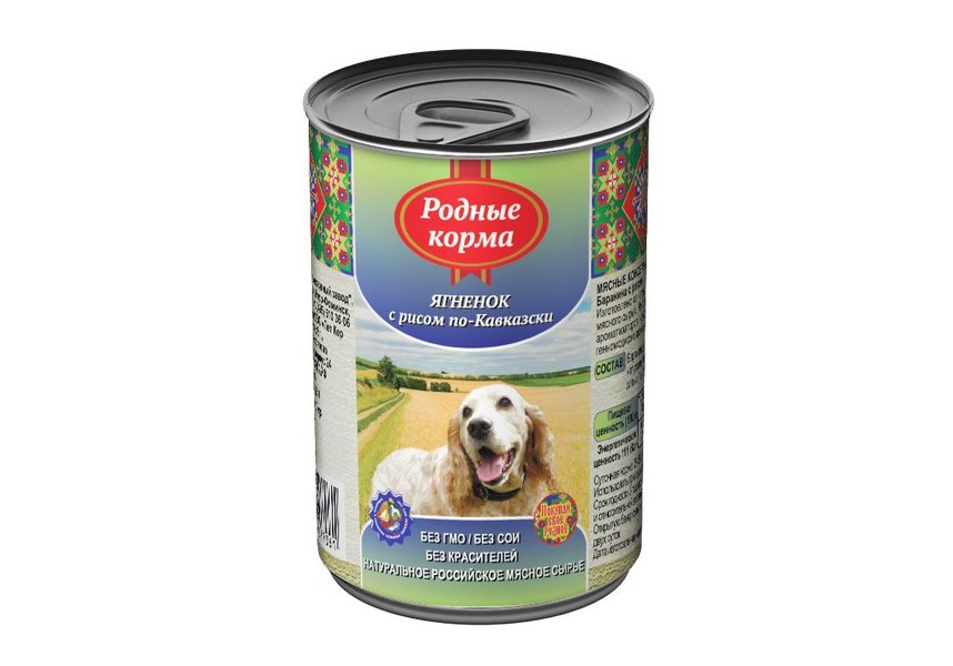 Родные Корма Консервы для собак Ягненок с рисом по-Кавказски (цена за упаковку) 410г х 9шт