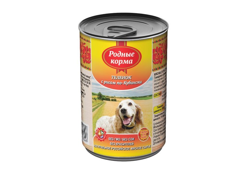 Родные Корма Консервы для собак Теленок с рисом по-Кубански (цена за упаковку) 410г х 9шт