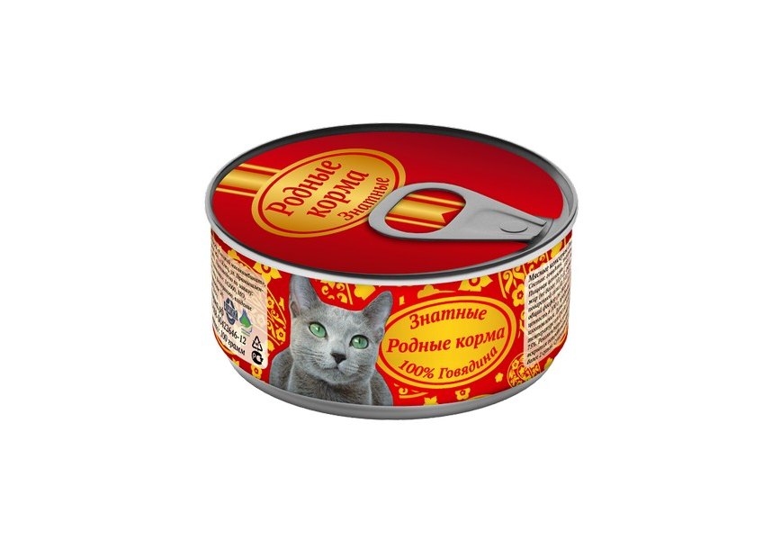 Родные Корма Консервы Знатные для кошек 100 % Говядина (цена за упаковку) 100г х 6шт