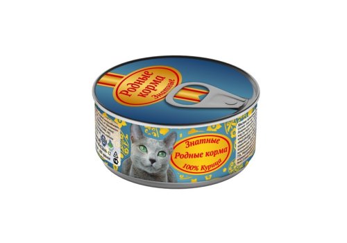 Родные Корма Консервы Знатные для кошек 100 % Курица (цена за упаковку) 100г х 12шт