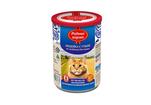 Родные Корма Консервы для кошек Индейка с Уткой по-Уездному (цена за упаковку) 410г х 9шт