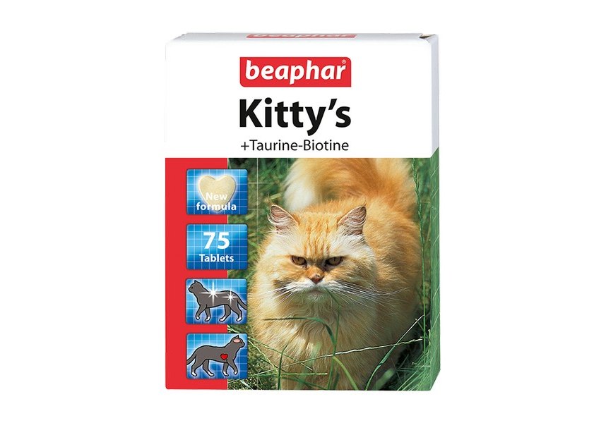 Beaphar Kitty's+Taurine+Biotin Кормовая добавка Беафар для кошек Витаминированное лакомство с Таурином и Биотином ("сердечки") 75 таб