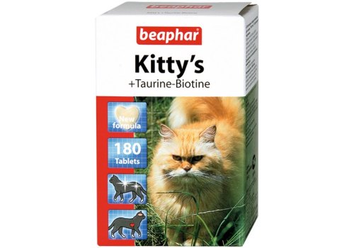 Beaphar Kitty's+Taurine+Biotin Кормовая добавка Беафар для кошек Витаминированное лакомство с Таурином и Биотином ("сердечки") 180 таб