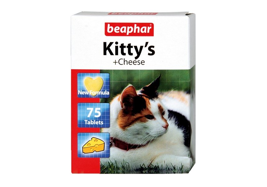 Beaphar Kitty's+Cheese Кормовая добавка Беафар для кошек Витаминизированное лакомство с Cыром ("сердечки") 75 таб