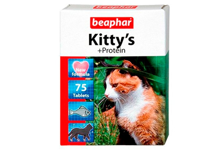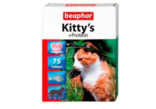 Beaphar Kitty's+Protein Кормовая добавка Беафар для кошек Витаминизированное лакомство с Протеином 75 таб