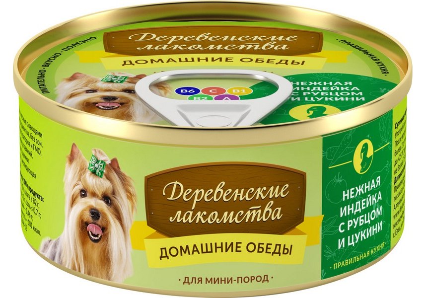 Деревенские лакомства Домашние обеды Консервы для Мини пород Нежная Индейка с Рубцом и Цукини (цена за упаковку) 100г х 5шт