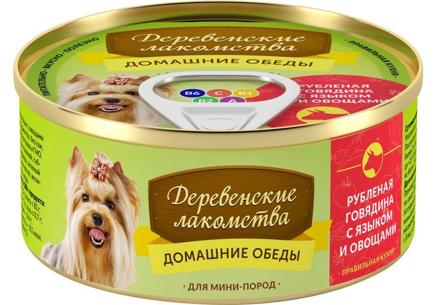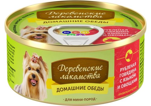 Деревенские лакомства Домашние обеды Консервы для Мини пород Рубленая Говядина с Языком и Овощами (цена за упаковку) 100г х 5шт
