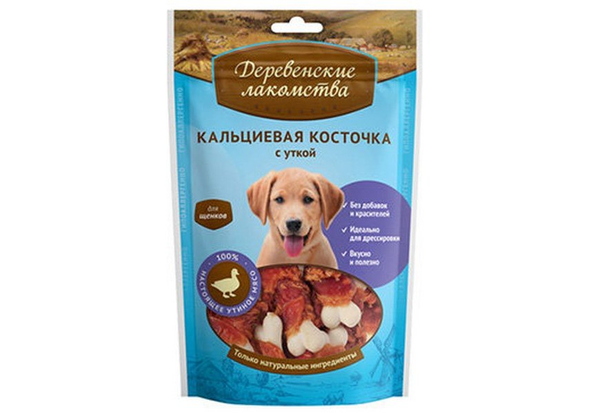 Деревенские лакомства 100% Мяса Кальциевая косточка с Уткой для Щенков 90 г