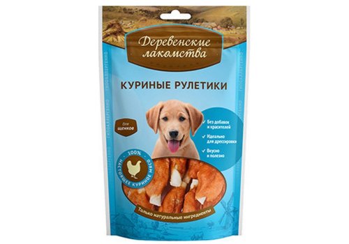 Деревенские лакомства 100% Мяса Куриные рулетики для Щенков 90 г