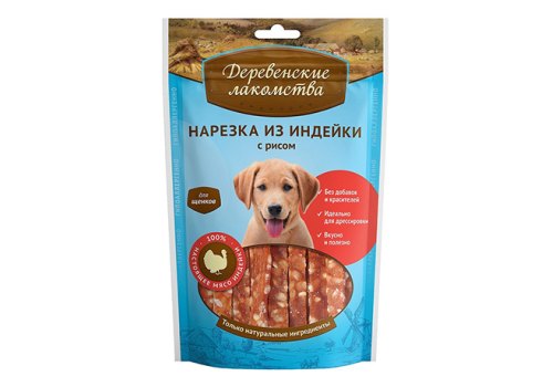 Деревенские лакомства 100% Мяса Нарезка из Индейки с рисом для Щенков 85 г