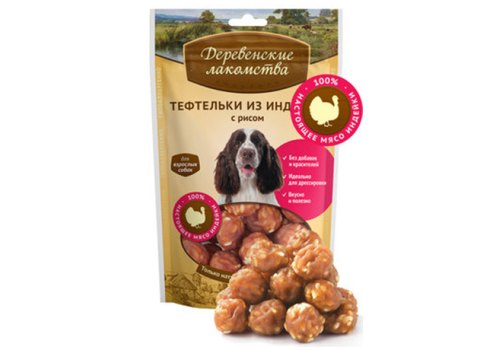Деревенские лакомства 100% Мяса Тефтельки из Индейки с рисом для собак 85 г