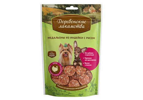 Деревенские лакомства Медальоны из Индейки с рисом для собак Мини пород 55 г