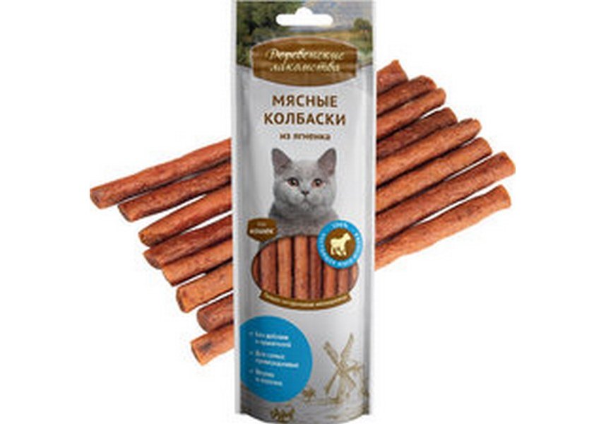 Деревенские лакомства Мясные колбаски из Ягненка для кошек 45 г