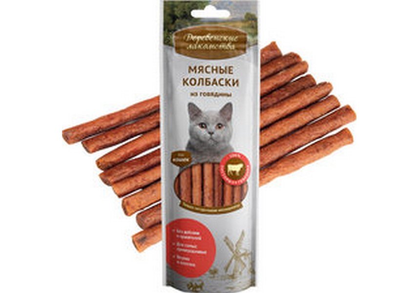 Деревенские лакомства Мясные колбаски из Говядины для кошек 45 г