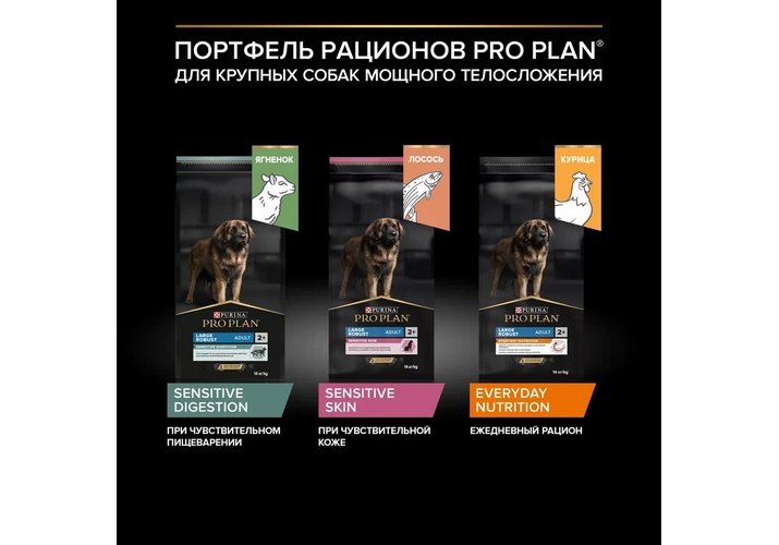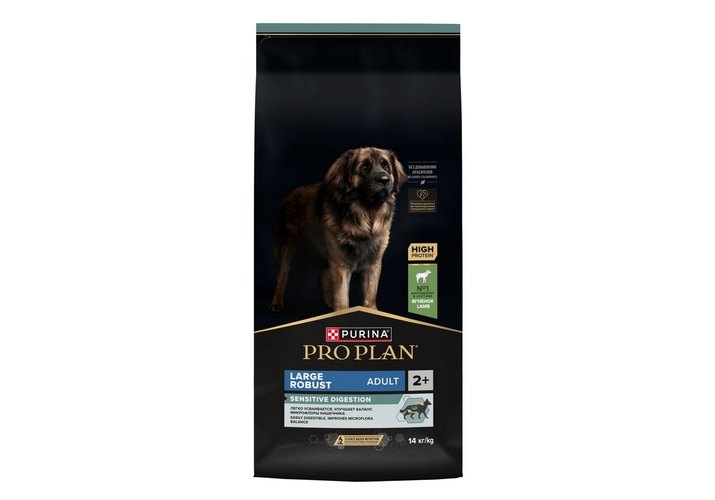 Изучая потребности собак на протяжении многих лет, команда квалифицированных ветеринарных специалистов и диетологов PURINA разработала сухой корм PRO PLAN® Sensitive digestion (для чувствительного пищеварения) — ежедневный рацион с высоким содержанием ягненка для взрослых собак крупных пород с мощным телосложением. Этот полнорационный корм сбалансирован по составу и помогает поддержать здоровое пищеварение.