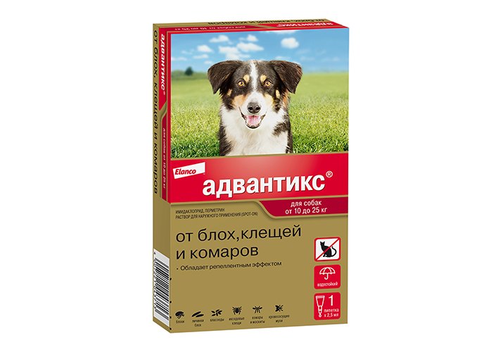 Elanco Адвантикс 250C Капли на холку от Блох, Клещей и Комаров для собак весом 10-25 кг 1шт x 2,5мл