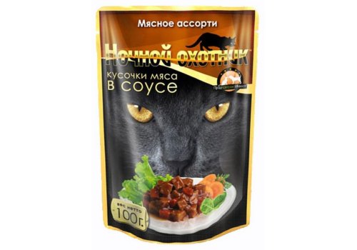 Ночной охотник Влажный корм Паучи для кошек Мясное ассорти кусочки в соусе (цена за упаковку) 100г х 24шт
