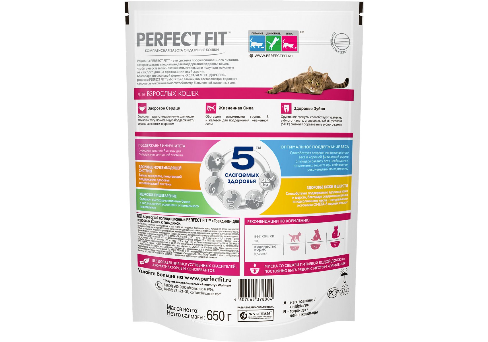 Perfect Fit Adult Сухой корм Перфект Фит для взрослых кошек Говядина 650 г