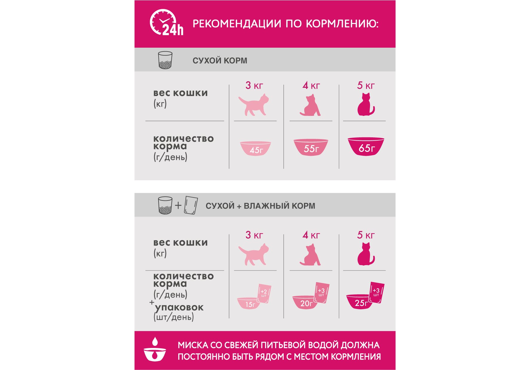 Корм предназначен для кошек в возрасте от 1 до 7 лет: