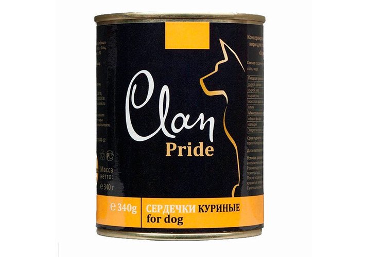Clan Pride Консервы Клан для собак Сердечки Куриные (цена за упаковку) 340г х 12шт