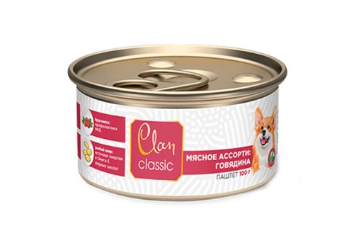 Clan Classic Консервы Клан для собак Мясное ассорти с Говядиной (цена за упаковку) 100г х 12шт