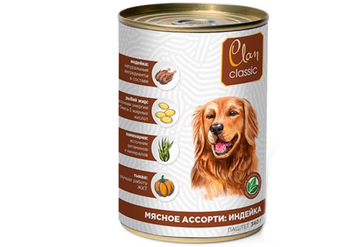 Clan Classic Консервы Клан для собак Мясное ассорти с Индейкой (цена за упаковку) 340г х 12шт