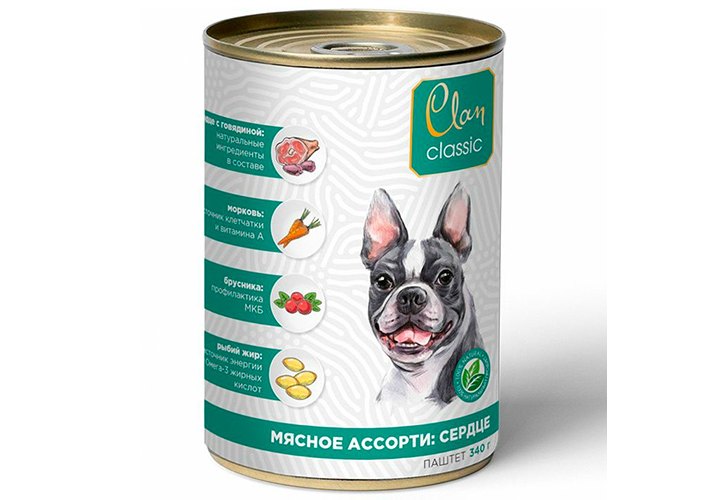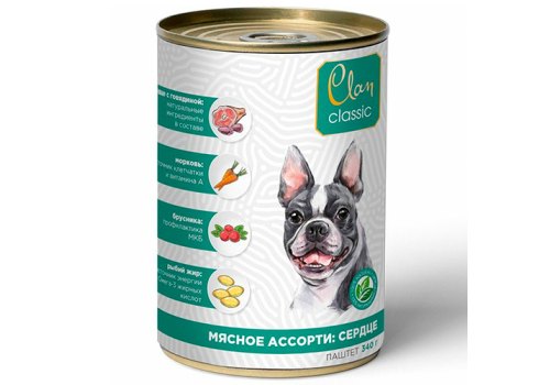 Clan Classic Консервы Клан для собак Мясное ассорти с Сердцем (цена за упаковку) 340г х 6шт