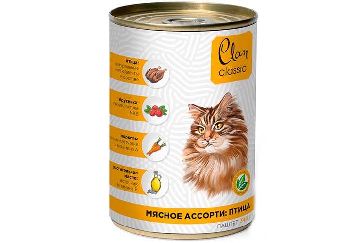 Clan Classic Консервы Клан для кошек Мясное ассорти с Птицей конс (цена за упаковку) 340г х 12шт