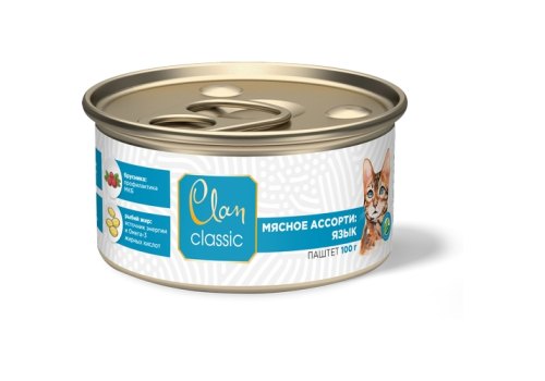 Clan Classic Консервы Клан для кошек Мясное ассорти с Языком (цена за упаковку) 100г х 12шт