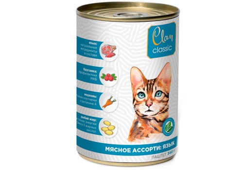 Clan Classic Консервы Клан для кошек Мясное ассорти с Языком конс (цена за упаковку) 340г х 6шт