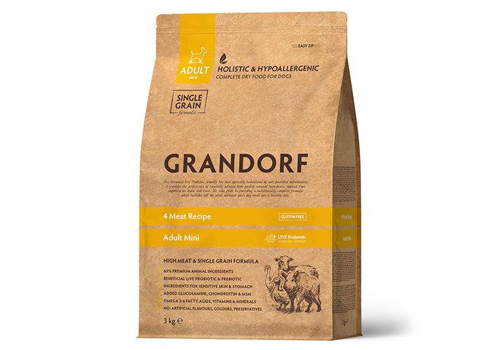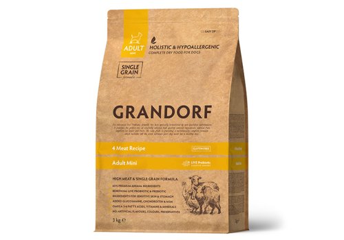 Grandorf Holistic & Hypoallergenic Mini Probiotic 4 meat Сухой корм Грандорф Низкозерновой с Живыми Пробиотиками для собак Мелких пород 4 Мяса с рисом 3 кг