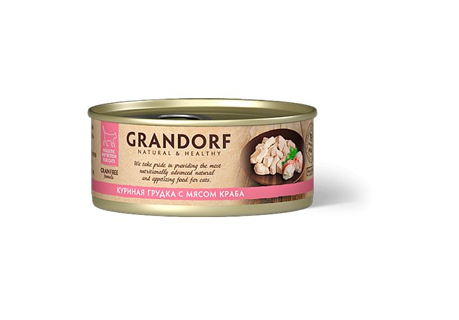 Grandorf Holistic & Hypoallergenic Консервы Грандорф для кошек Куриная грудка с мясом Краба (цена за упаковку) 70г х 6шт