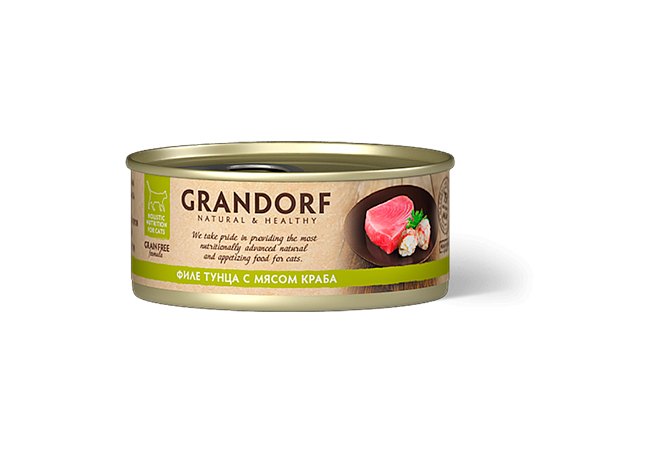 Grandorf Holistic & Hypoallergenic Консервы Грандорф для кошек филе Тунца с мясом краба (цена за упаковку) 70г х 6шт