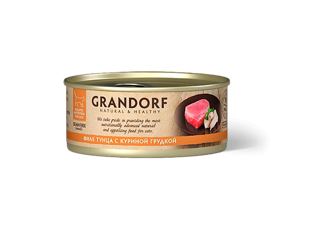 Grandorf Holistic & Hypoallergenic Консервы Грандорф для кошек филе Тунца с куриной грудкой (цена за упаковку) 70г х 6шт