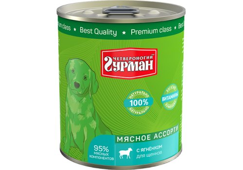 Четвероногий Гурман Мясное ассорти Консервы для Щенков с Ягненком (цена за упаковку) 340г х 12шт